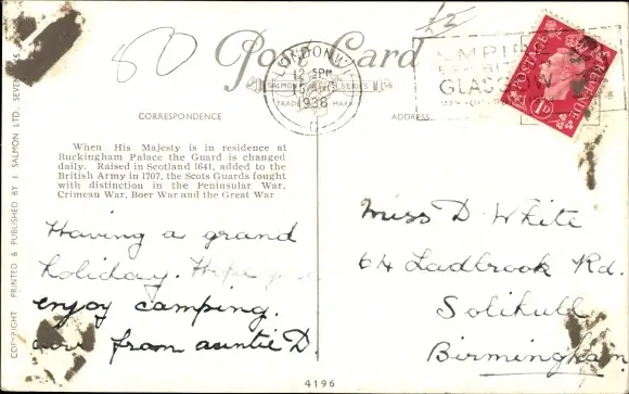 Zustand, siehe Scan, gelaufen, 1938 - ca 14 cm X 9 cm