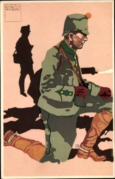 Künstler Ak Huber, E., Schweizerischer Soldat in Uniform, Felduniform, Neue Ordonnanz
