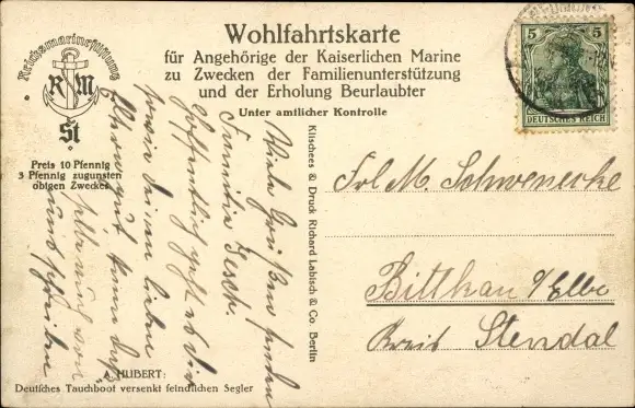 Künstler Ak Hubert, A., Deutsches U Boot, Tauchboot versenkt feindlichen Segler