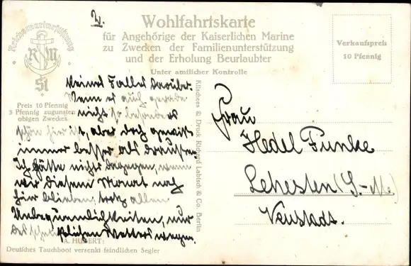 Künstler Ak Hubert, A., Deutsches U Boot, Tauchboot versenkt feindlichen Segler