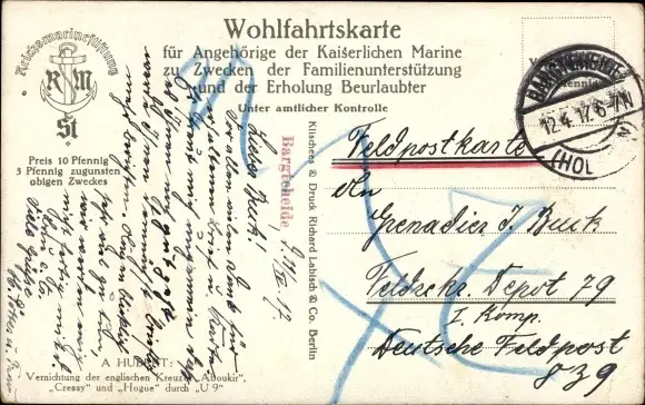 Zustand, siehe Scan, gelaufen, 1917 - ca 14 cm X 9 cm