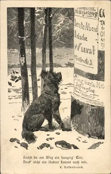 Künstler Ak Hund an der Litfaßsäule sitzend, Reim