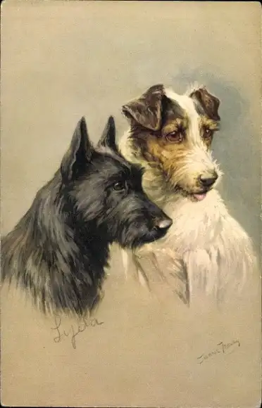 Künstler Ak Hundeportrait, zwei Terrier