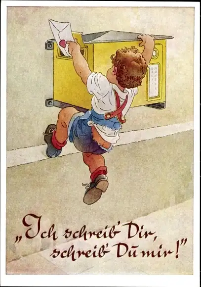 Künstler Ak Ich schreib Dir, schreib Du mir, Junge am Briefkasten