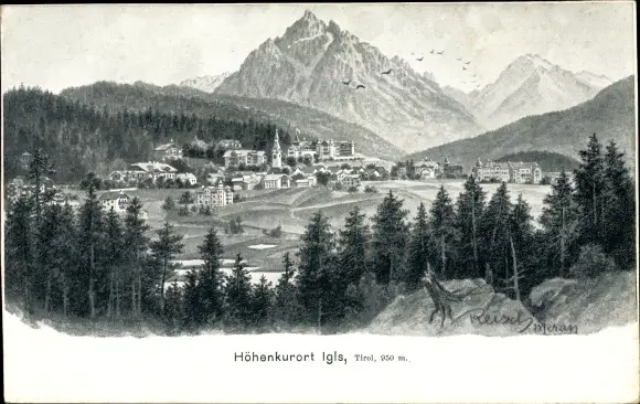 Künstler Ak Igls Innsbruck in Tirol, Totalansicht