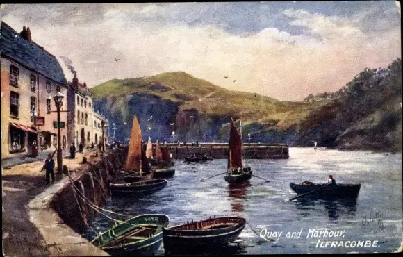 Künstler Ak Ilfracombe Devon, Quay and Harbour