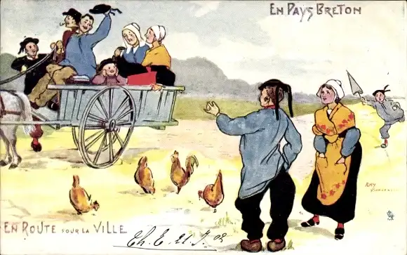 Künstler Ak In Breton Country, On the Road to the City, Kostüme