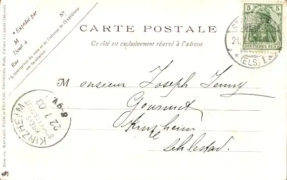 Zustand, siehe Scan, gelaufen, 1903 - ca 14 cm X 9 cm