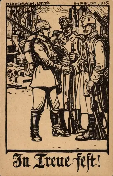 Künstler Ak In Treue Fest, Zweibund, Deutscher Soldat, KuK-Soldat