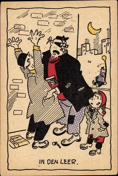Künstler Ak In der Lehre, Junge schaut einem Straßenräuber zu