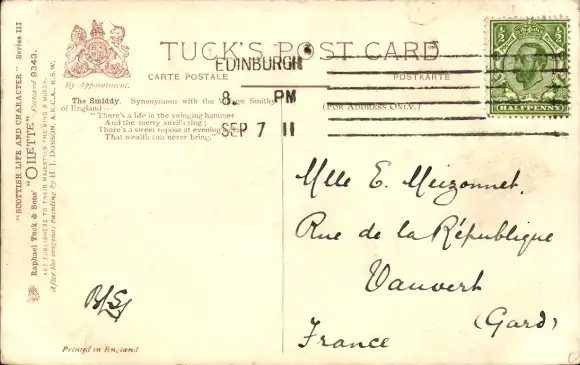 Zustand, siehe Scan, gelaufen- Tuck III 9343 - ca 14 cm X 9 cm
