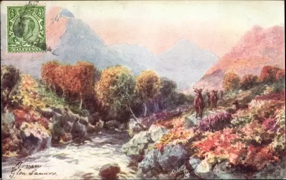 Künstler Ak Isle of Arran Schottland, Glen Sannox, Ochsen