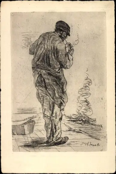 Künstler Ak Israels, Jozef, Mann zündet Pfeife an, Feuer