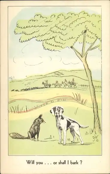 Künstler Ak Jagdszene, Hund mit Fuchs