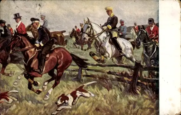 Künstler Ak Jank, Angelo, Reitschuljagd, Jagdszene
