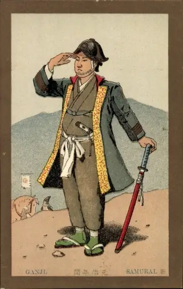 Künstler Ak Japan, Ganji, Samurai, Samuraischwert, Samureihelm