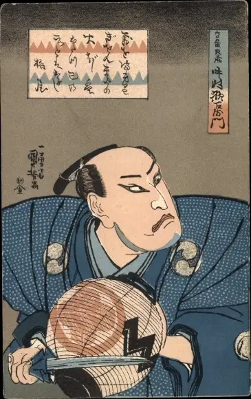 Künstler Ak Japan, Japaner mit Dolch und Lampion