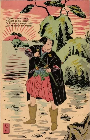 Künstler Ak Japan, Japanischer Krieger am Ufer