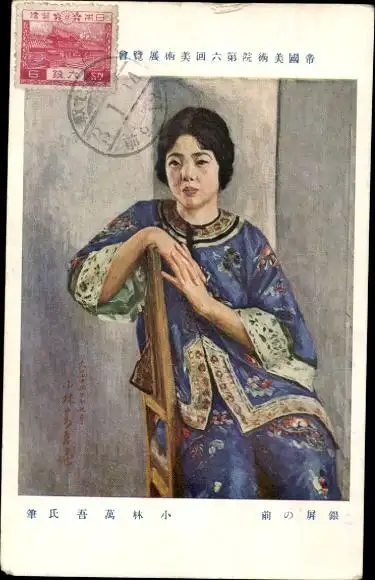 Künstler Ak Japanerin in Tracht, Gemaltes Porträt