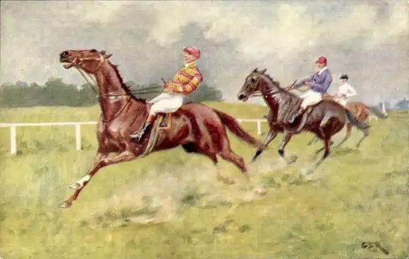 Künstler Ak Jockeys zu Pferde, Pferderennen