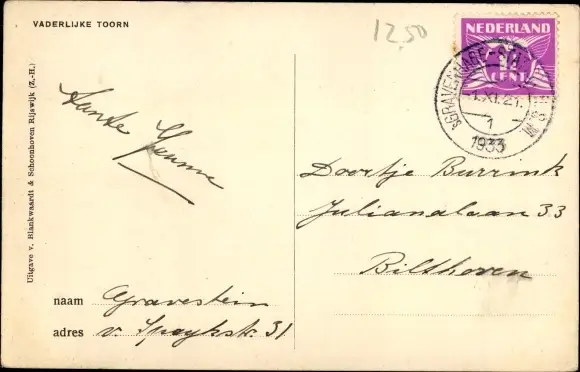 Zustand, siehe Scan, gelaufen, 1933 - ca 14 cm X 9 cm