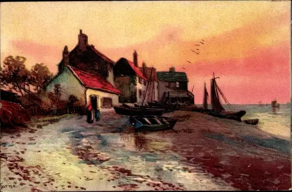 Künstler Ak Jotter, Ortsmotiv an der Küste, Dämmerung
