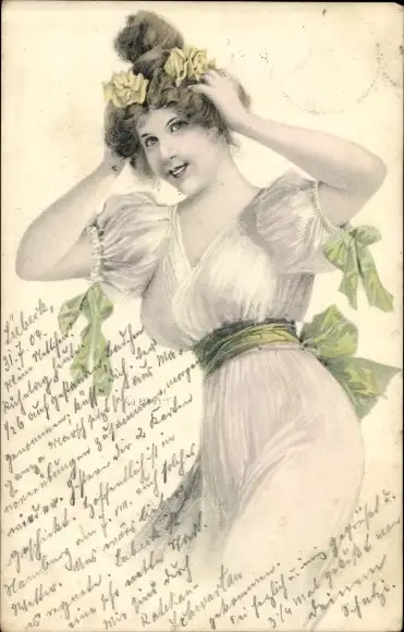 Künstler Ak Junge Frau in durchsichtigem Kleid, Busen, Herzensdiebinnen