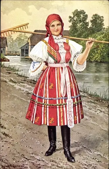Künstler Ak Junge Frau in tschechoslowakischer Volkstracht