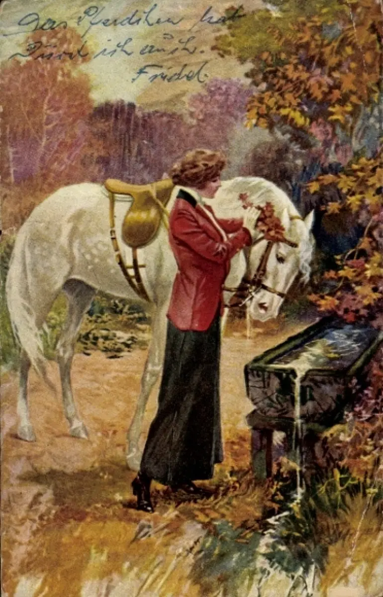 Künstler Ak Junge Frau mit Pferd, Portrait