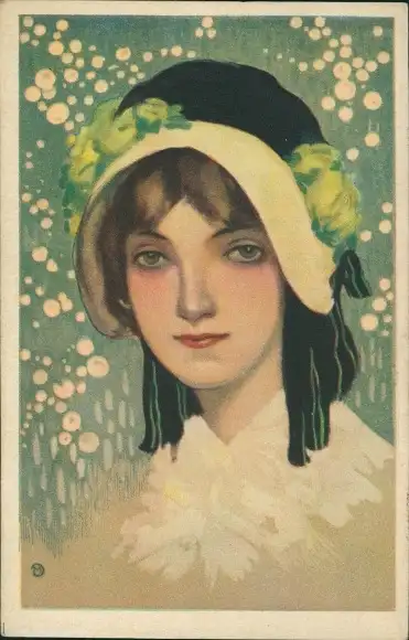 Künstler Ak Junge Frau mit schwarzem Hut