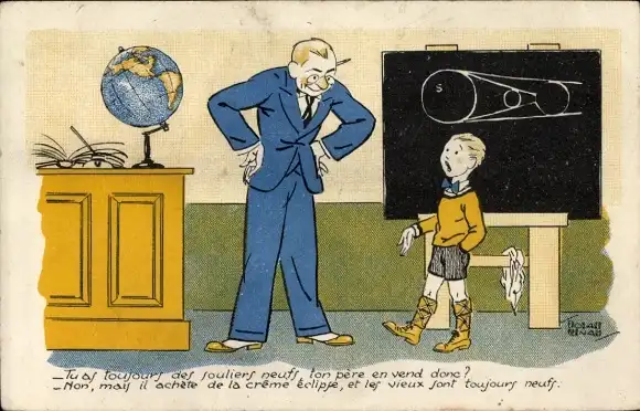 Künstler Ak Junge an der Tafel, Lehrer, Schule