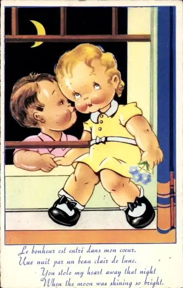 Künstler Ak Junge gibt Mädchen einen Kuss auf die Wange