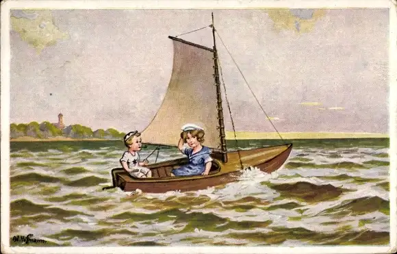 Ansichtskarte, Postkarte, Hafen, Schiffe, Boote, Dampfer, Boot