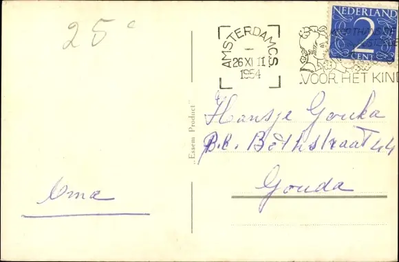 Zustand, siehe Scan, gelaufen, 1954 - ca 9 cm X 14 cm