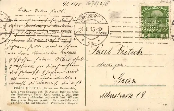 Zustand siehe Scan, 1915, gelaufen - ca 9 cm X 14 cm