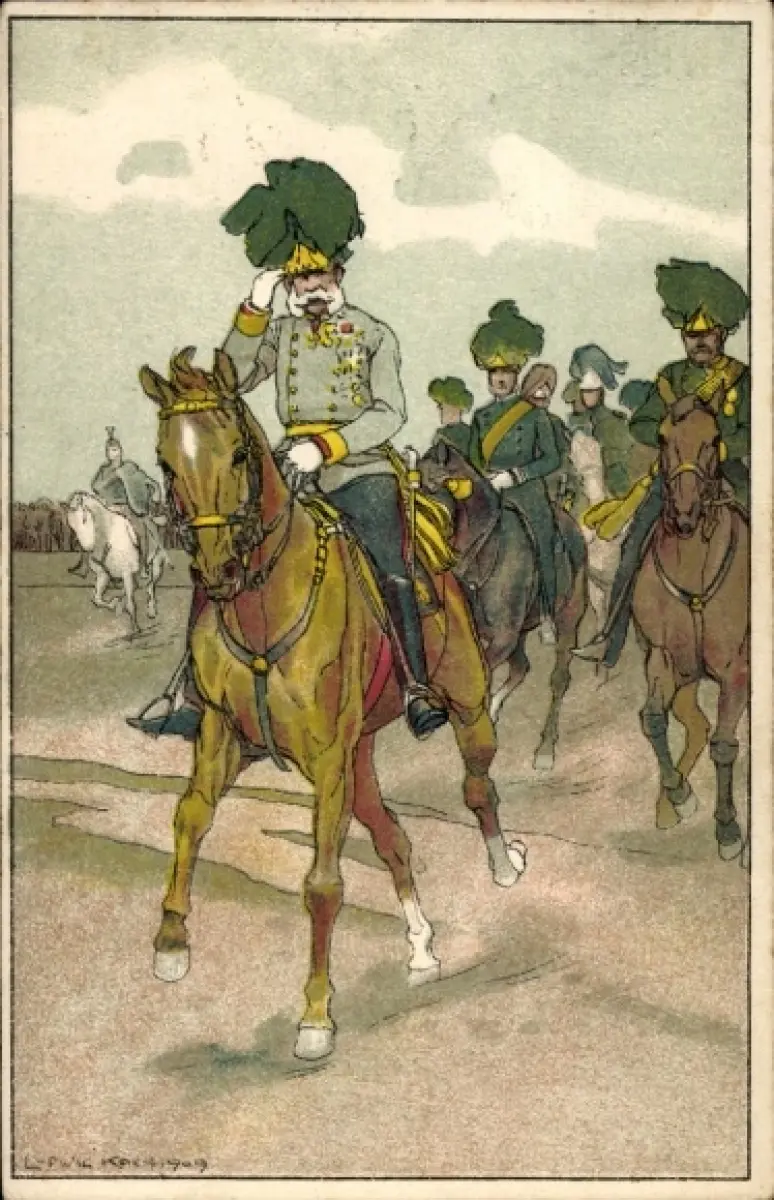 Künstler Ak Kaiser Franz Joseph zu Pferde, Portrait