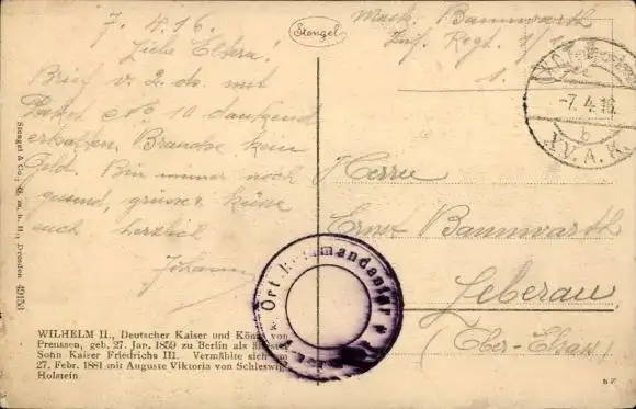 Zustand, siehe Scan, gelaufen, 1916 - ca 3 cm X 5 cm