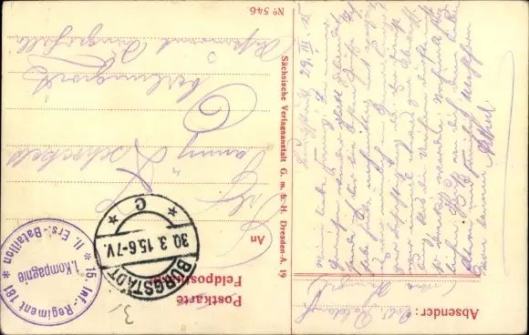 Zustand, siehe Scan, gelaufen, 1915 - ca 9 cm X 14 cm