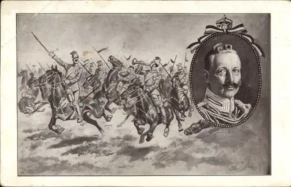 Künstler Ak Kaiser Wilhelm II., Soldaten im Feld, Ulanen