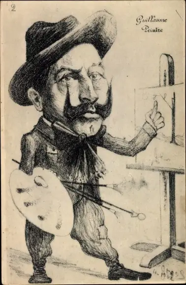 Künstler Ak Kaiser Wilhelm II. als Maler, Karikatur
