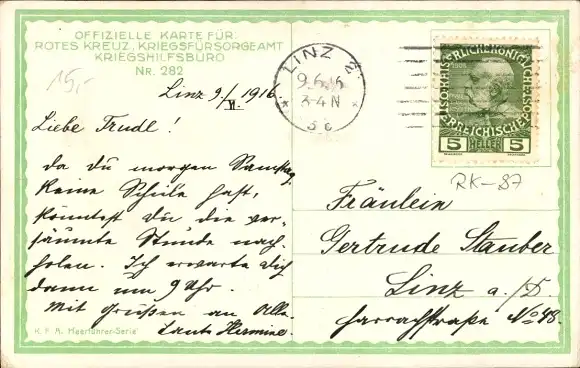 Zustand siehe Scan, gelaufen, 1916 - ca 9 cm X 14 cm