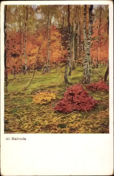 Künstler Ak Kalvoda, A., Partie im Wald, Birken, Laubbäume