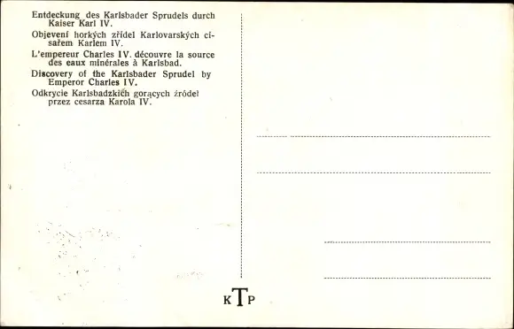 Künstler Ak Karlovy Vary Karlsbad Stadt, Entdeckung des Karlsbader Sprudels durch Kaiser Karl IV