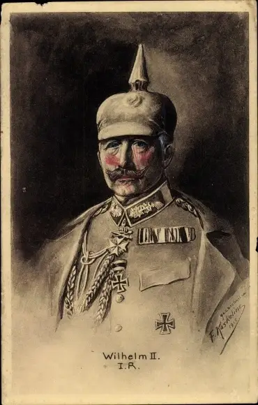 Künstler Ak Kaskeline, Kaiser Wilhelm II., Portrait in Uniform, Eisernes Kreuz