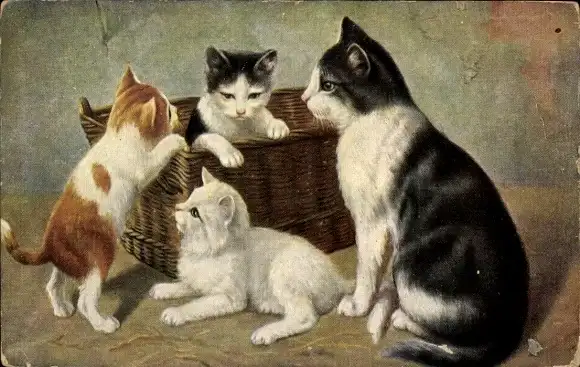 Künstler Ak Katzenmutter mit ihren Kitten