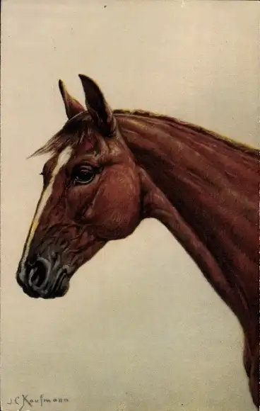 Künstler Ak Kaufmann, J. C., Braunes Pferd, Kopfstudie