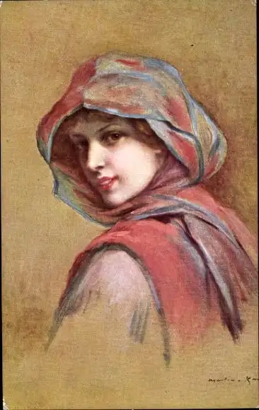 Künstler Ak Kavel, M., Porträt einer Frau, Kopftuch