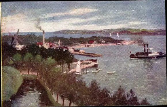Ansichtskarte, Postkarte, Hafen, Schiffe, Boote, Dampfer, Boot