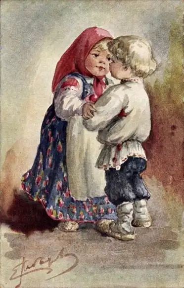 Künstler Ak Kinder in Trachten, Liebespaar, Porträt