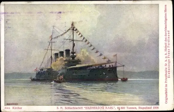 Künstler Ak Kircher, Alex, Österreichisches Kriegsschiff, Schlachtschiff SMS Erzherzog Karl